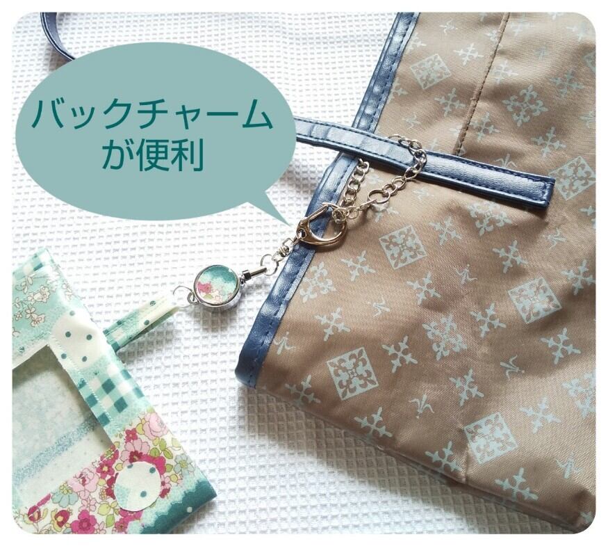 バックの持ち手が太くてもチャームが付いているので簡単にフックを掛けられます。