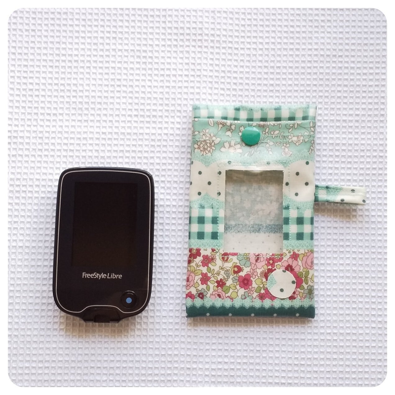 フリースタイルリブレ専用ポーチ(レイシーフラワー/グリーン) ※素材生地の再入荷しました。