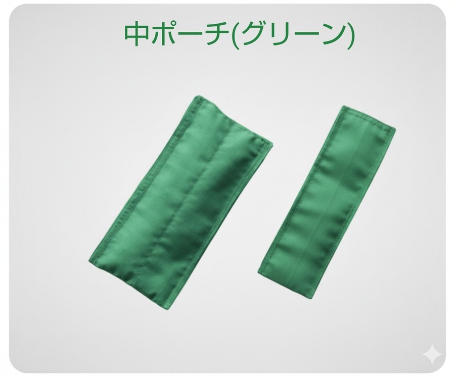 グリーンパードフラワーの中ポーチの色を変更出来ます。ご購入時にご要望もしくは備考欄に「グリーンB」とご記入ください。