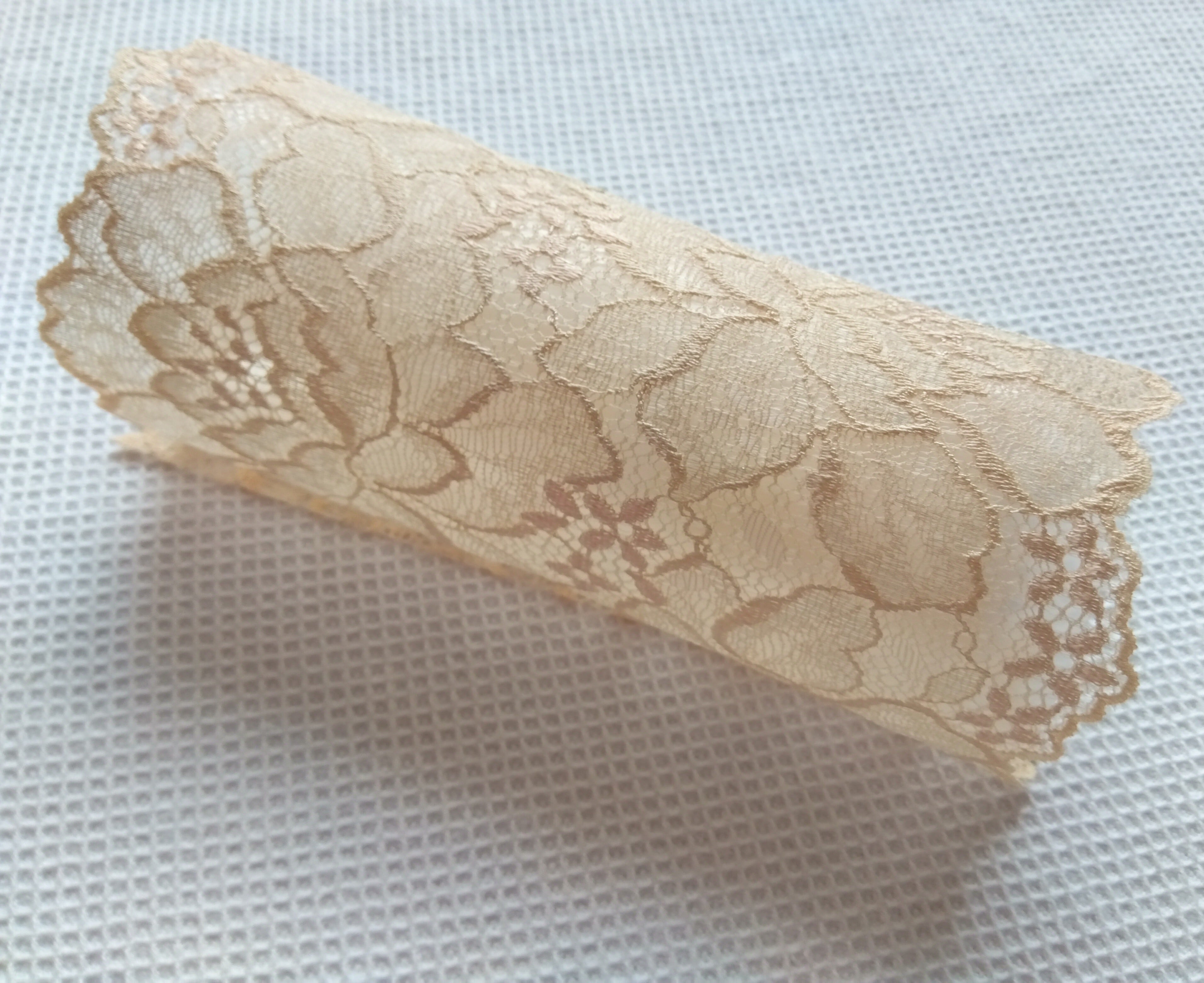 を使用しています。ランジェリー等にも使われるストレッチレースで、サポーターの幅は約130mm